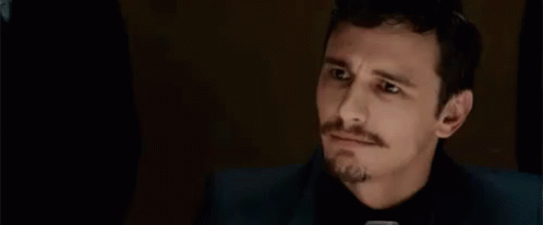 James Franco reacts with a surprised expression, bringing his hands to his head in a close-up shot.