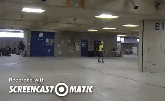 Roller derby player in helmet and pads gets hit by another player during a game, showcasing intense boom skating action.