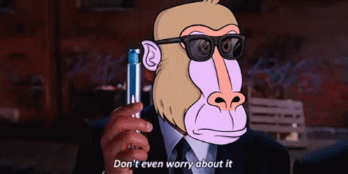Animated monkey character, Boon Boons, in a suit and sunglasses, saying 'Don't even worry about it'.