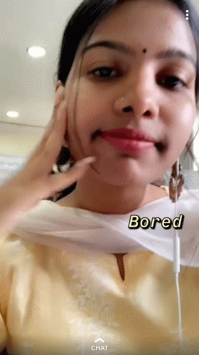 A young woman makes a bored expression while taking a selfie, wearing traditional Indian attire.