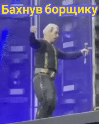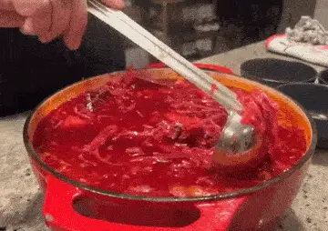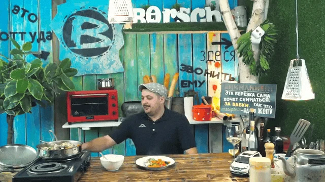 A character from the Russian animated series Барбоскины (Barboskiny) dances energetically with the word 'borsch' on screen.