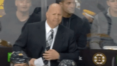 Boston Bruins Head Coach Claude Julien reacts with a clear 'I DISAGREE' during a hockey game.