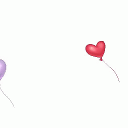 Boulenin Opely, a cartoon girl with long white hair, floats with a bunch of heart-shaped balloons.