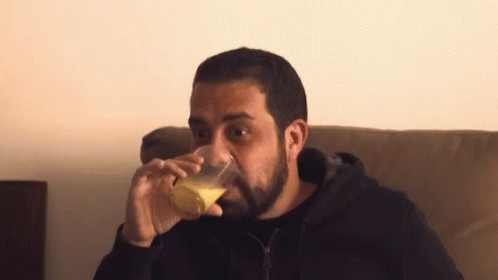 Boulos Boulos50 enjoying a drink from a glass, captured in a casual setting.