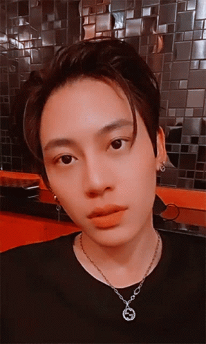 Boun Napponat making a cute pouty face while posing for a selfie, wearing a black shirt and necklace.