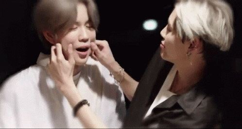 Bounprem: Boun gently stretches Prem's cheeks, a cute and playful moment between the two.