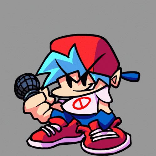 Boyfriend from FNF animated, holding a microphone and wearing his signature red cap and white t-shirt.
