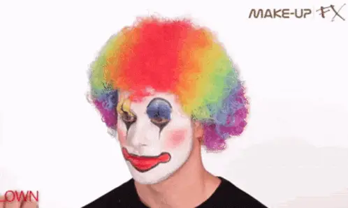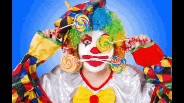 Russian text 'God, dude, you' appears, followed by various clips of clowns smiling and performing.