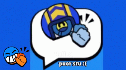 A Brawl Stars character is shown with a 'poor Stu' message, followed by a laughing character's reaction.