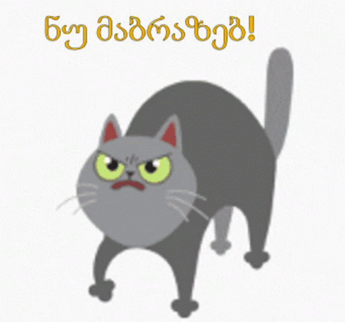 An animated gray cat transforms from annoyed to furious, with lightning bolts indicating its anger.