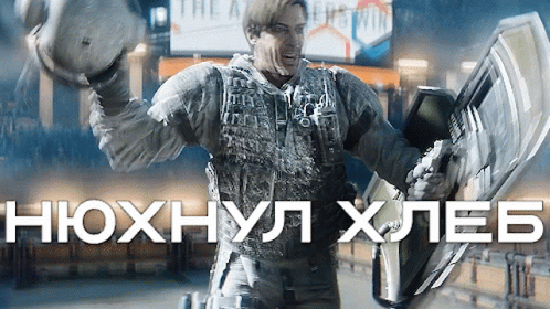 Man in tactical gear with a shield, reacting intensely to smelling bread, a meme from Rainbow Six.