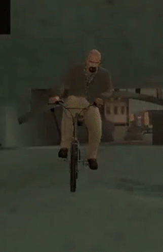 Walter White from Breaking Bad rides a bike in a video game.