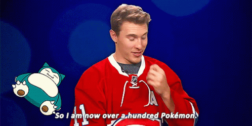 Brendan Gallagher, in a Canadiens jersey, shares he's now collected over a hundred Pokémon.