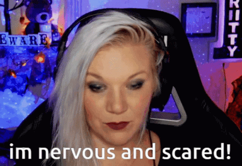 Briittybear from Bear Clan expresses nervousness and fear with the on-screen text 'I'm nervous and scared!'.