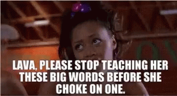 Blaque's character Lava in Bring It On, with a meme about stopping her from teaching big words.