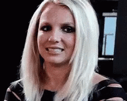 Britney Spears attempts a smile, with the caption 'I hate my life' appearing on screen.