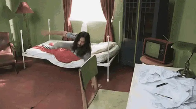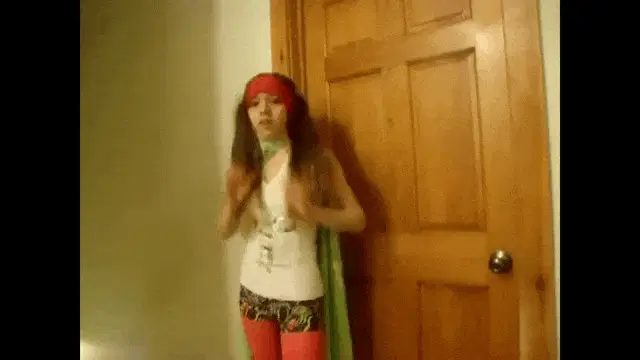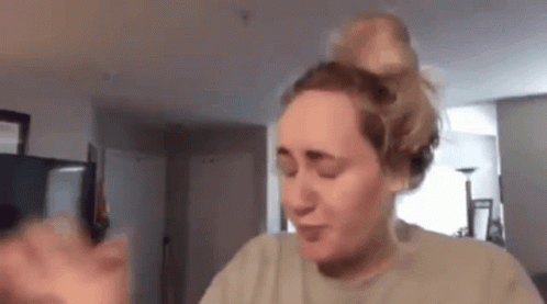 Brittany Broski makes a funny face in her viral 'Kombucha Girl' reaction, holding a cell phone in a living room.
