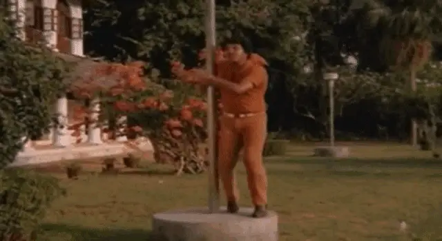 Mohanlal gives a double thumbs up in a scene from the Malayalam film Bro Daddy.