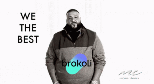 DJ Khaled promotes the Brokoli brand, wearing a sweatshirt with the logo and 'We The Best' text.