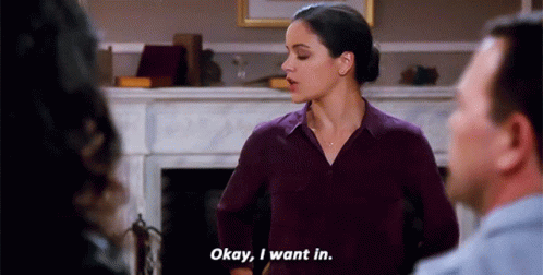 Amy Santiago (Melissa Fumero) from Brooklyn Nine-Nine declares "Okay, I want in" with determination.