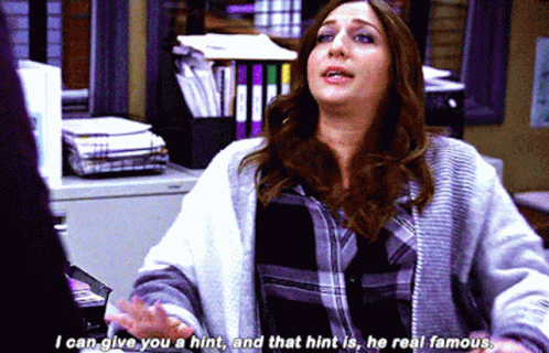 Gina Linetti (Chelsea Peretti) from Brooklyn Nine-Nine gives a famous hint about someone being real famous.
