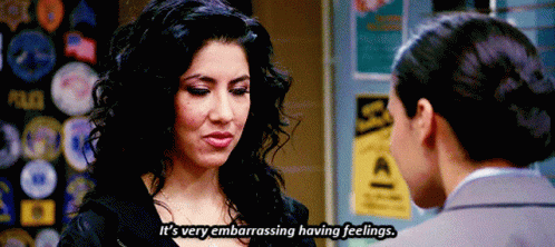 Rosa Diaz from Brooklyn Nine-Nine, played by Stephanie Beatriz, expresses her discomfort with emotions, stating 'It's very embarrassing having feelings.'