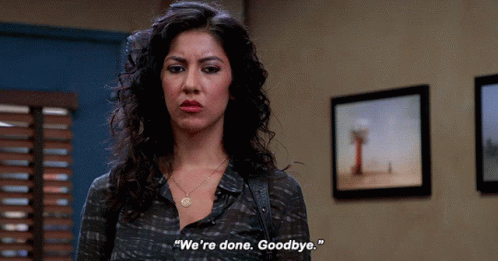 Rosa Diaz, played by Stephanie Beatriz, delivers a firm 'We're done. Goodbye.' in Brooklyn Nine-Nine.