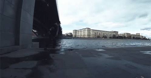 Anton Lazarev throwing an object into the river from under a bridge, possibly magnet fishing.