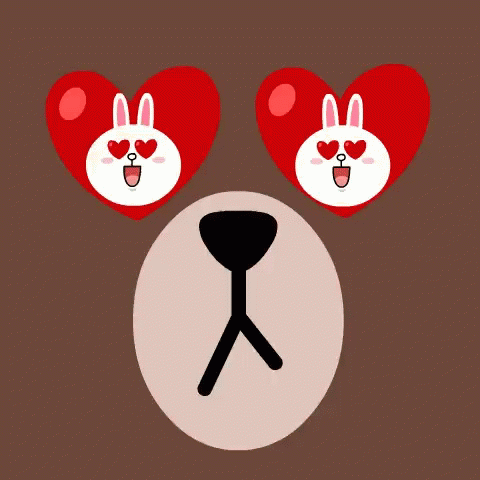 Cony, the white rabbit character, gazes with heart-shaped eyes at Brown, the bear character.