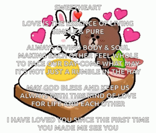 A heartfelt love poem titled 'Sweetheart' displayed on a cartoon image of toast with an egg and bacon, featuring Brown and Cony.