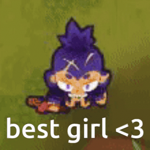 An animated sticker of Ezili from Bloons TD 6, with the text "best girl <3" displayed below her.