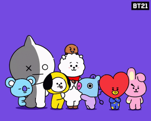 The BT21 characters, including Tata, Cooky, Chimmy, and Koya, struggle against powerful strong winds.