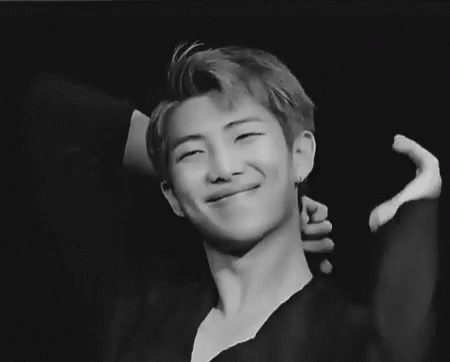 BTS's RM, Kim Namjoon, makes a cute finger heart and smiles, showing off his adorable dimples.