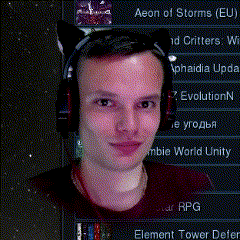 Bubilda Zhigulevskk, a man wearing a cat ear headset, points and gives a thumbs up, showing his awesome personality.