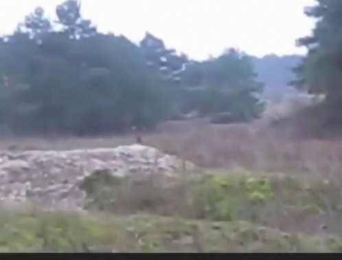 A buck runs wildly through a forest, jumping over obstacles in a blurry, shaky video.