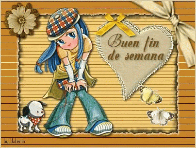 A charming illustration of a girl and her dog, wishing a 'Good Weekend' in Spanish, created by Valeria.