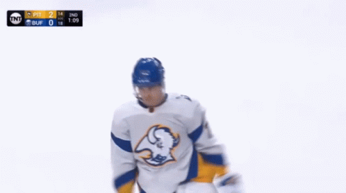 Jj Peterka and Buffalo Sabres teammates celebrate a goal on the ice during an NHL hockey game.