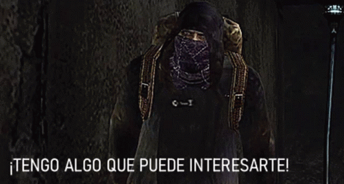 The Buhonero from Resident Evil 4 shows off his wares, including three PDF icons, with a tempting offer.