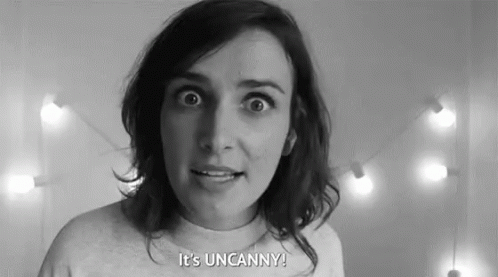 Bumbanafofinha reacts with wide-eyed surprise, exclaiming 'It's UNCANNY!' in this black and white clip.
