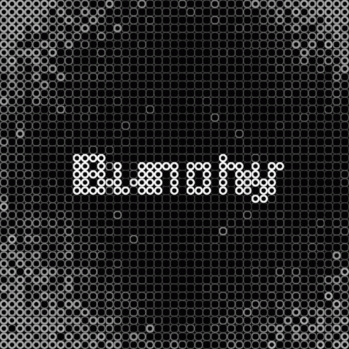 The word 'BUNCHY' displayed in white circles on a black background with a fading circle pattern, reflecting a cryptoart aesthetic.