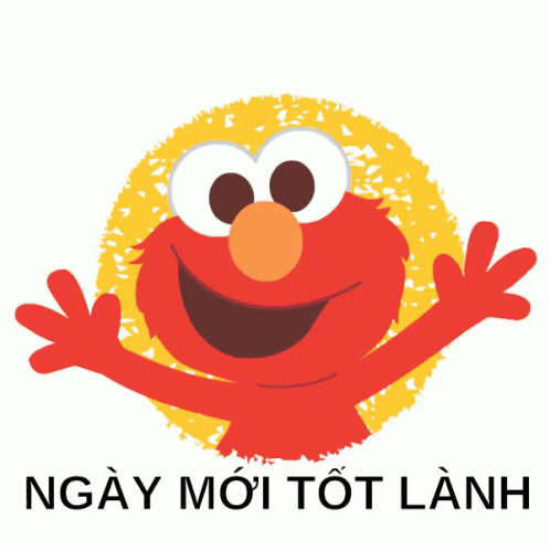 Elmo from Sesame Street smiles with outstretched arms, wishing a good morning.