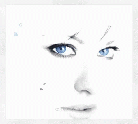 A captivating drawing of a woman with striking blue eyes, adorned with floating petals and the name Samir.