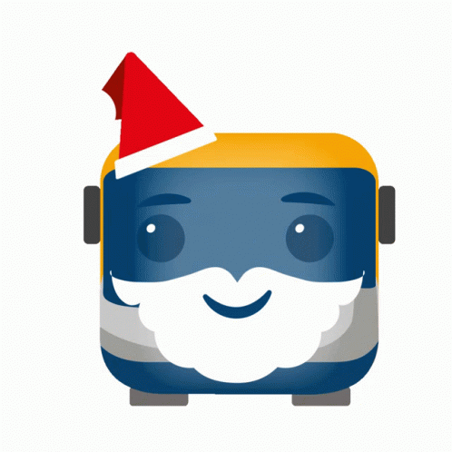 A cheerful Busmoji character dressed as Santa Claus, featuring a red hat and white beard, ready for Christmas.