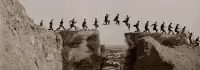 Buster Keaton performs a dangerous cliff stunt, hanging precariously in this classic silent film loop.