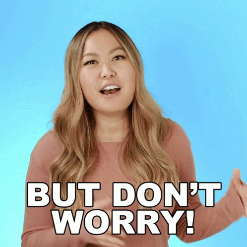 Ellen Chang delivers a reassuring message, saying 'But Don't Worry!' against a vibrant blue background.