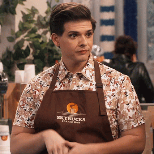 CJ, played by Thomas Ochoa, waves goodbye while working at Skybucks Coffee Bar.