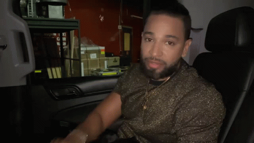 Henry Santos gives a peace sign and says goodbye, wearing a sparkly top.