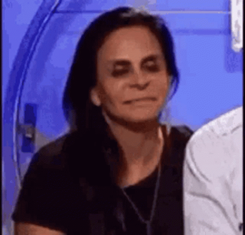 Gretchen makes a funny face, covering her mouth in a byuntear meme reaction.