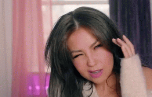 Thalia makes a pained expression, touching her head, as if she has a headache.