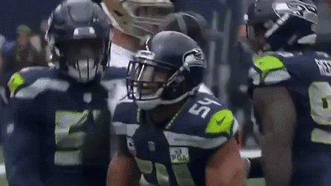 Bobby Wagner makes an interception, followed by a 'Pro Bowl Arms' meme and a celebratory fall.